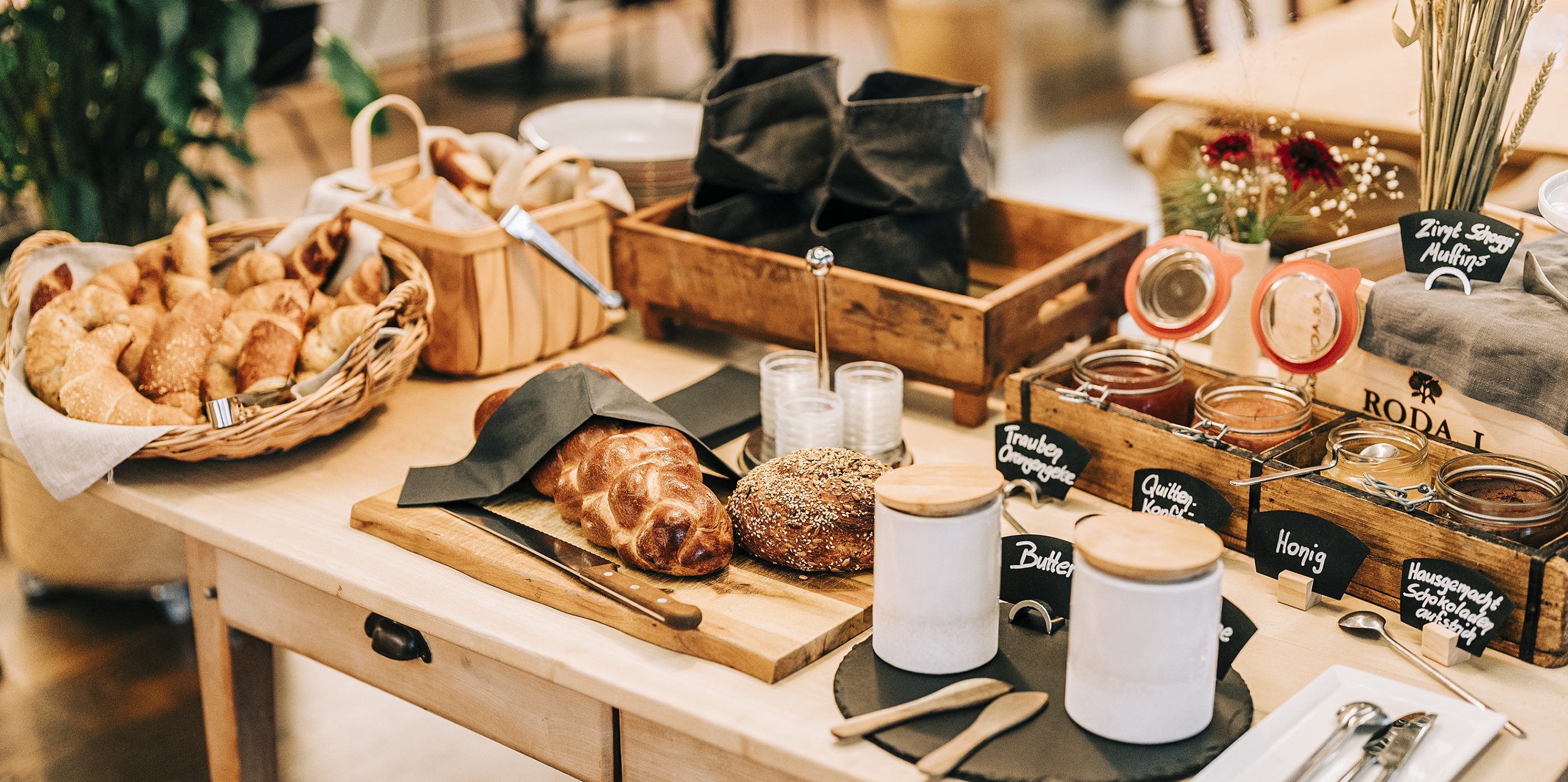 Für unsere veganen Gäste bieten wir eine breite Palette an pflanzlichen Köstlichkeiten an: Von selbstgemachten Aufstrichen über frisches Obst bis hin zu Backwaren - bei uns ist für jeden Geschmack etwas dabei.